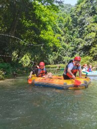 由于天然原生去雕飾的自然特點(diǎn),皇龍峽景區(qū)峽谷漂流河道河水清澈見底,冰涼清爽,非常適合在這個(gè)季節(jié)前往,讓雙腳泡在冰涼的河水中,使身心得以釋放。
